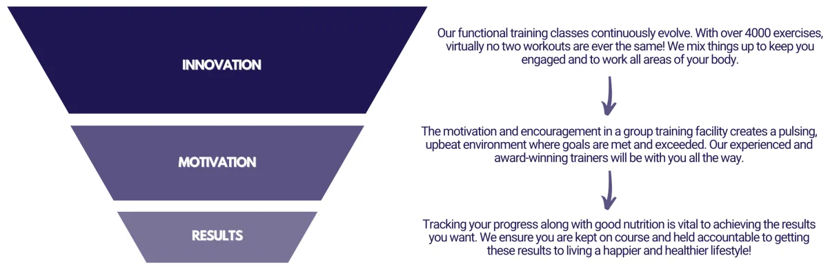 We're a community who are focused on you - hitting your fitness goals by combining elements of High-Intensity Interval Training (HIIT), Circuit Training, and Functional Training in 45-minute classes (just 3% of your day!)